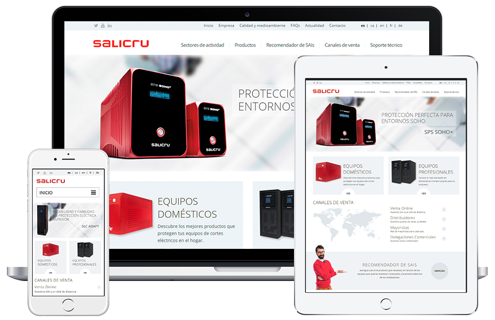 La nueva página web www.salicru.com, incorpora una serie de cambios y mejoras tanto en su diseño como en su arquitectura que ofrecen a sus usuarios una navegación ágil y muy intuitiva por sus diferentes secciones. Gracias a su carácter adaptative, la nueva web se adapta también a dispositivos como teléfonos móviles y tablets, lo que garantiza su total accesibilidad.